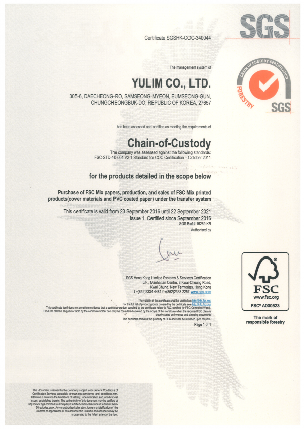 또한 FSC® 인증을 통하여 유림은 종이의 원산지 및 출처를 파트너들에게도 공유함으로써 더 신뢰받는 브랜드가 되기 위하여 노력해오고 있습니다.